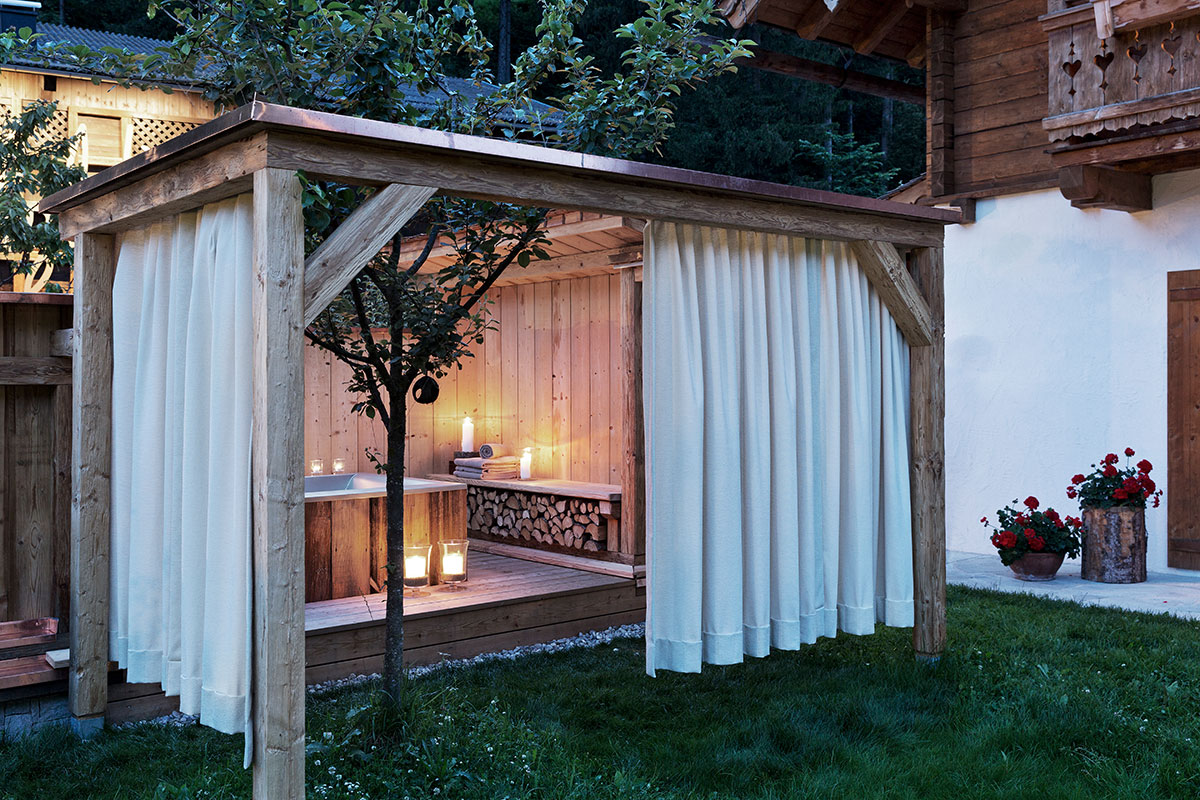 Ein echtes Highlight befindet sich im Freien. Mitten im Garten, durch Vorhänge vor aller Blicke verborgen, steht eine große Badewanne. Auf Knopfdruck verwandelt sich diese je nach Lust, Laune und Jahreszeit in ein Plantschbecken für die ganze Familie oder in ein romantisches Schaumbad für Verliebte. Diese können sich von Familie Fischbacher auch mit liebevoll zusammengestellten Arrangements wie etwa dem „Badezauber-Package“ verwöhnen lassen. Der Grillplatz im eigenen Garten, die Sonnenliegen und die gemütliche Sitzecke auf der Terrasse versprechen eine unvergesslich schöne Zeit mit den Liebsten. Eigentlich müsste man das eigene Chalet während des gesamten Urlaubes gar nicht verlassen. Aber das wäre schade. Denn im Holzleb‘n gibt es so viel zu entdecken.