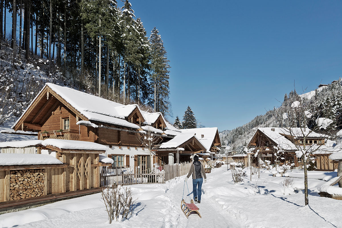 Mit den Schneeflocken um die Wette tanzen, den schönsten Schneemann aller Zeiten bauen oder herrliche Schwünge auf pulverbedeckten Pisten ziehen – das alles und noch viel mehr erwartet Gäste beim Winterurlaub im Holzleb‘n. Ein Kinderschneeparadies und ein Übungslift liegen gleich gegenüber vom Feriendorf und verbinden es mit den endlosen Pistenweiten von Ski amadé – Österreichs größtem Skigebiet. Auch abseits der Pisten lässt sich hier so einiges erleben. Von der lustigen Rodelpartie bis zur romantischen Pferdeschlittenfahrt, von der geführten Skitour bis zur Schneeschuhwanderung – hier findet jeder sein ganz persönliches Winterglück.