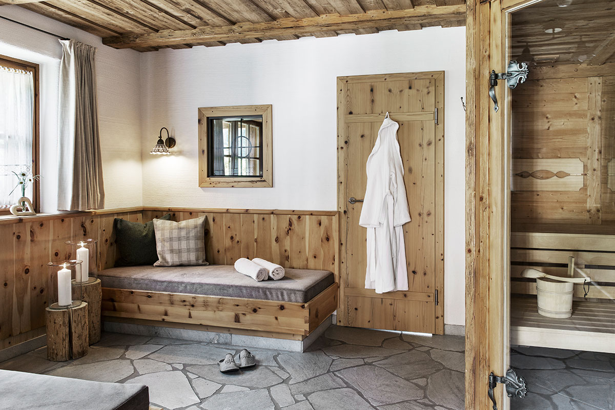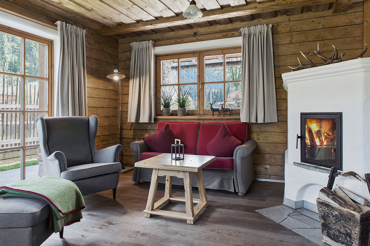 Rund um den elterlichen Bauernhof hat Sepp Fischbacher gemeinsam mit seiner Familie seinen Traum vom Feriendorf aus Holz verwirklicht. Heute stehen im Holzleb‘n acht Chalets, allesamt im Stil alpiner Holzhäuschen. Jedes verfügt über einen eigenen umzäunten Garten, was Hundebesitzer besonders freut. Ob für Vier- oder Zweibeiner, im Inneren der Chalets tut sich im wahrsten Sinne des Wortes viel Raum auf. Die stilvoll und äußerst gemütlich eingerichteten Chalets sind bis zu 160 Quadratmeter groß und verfügen über bis zu fünf getrennte Schlaf- und bis zu drei Badezimmer. Im großzügig gestalteten Wohnbereich befindet sich neben einer großen Couch, TV und riesigem Esstisch auch eine komplett ausgestattete Küche. Passionierte Hobbyküche können sich hier nach Herzenslust austoben. Aber auch wer sich nach Strich und Faden verwöhnen lassen möchte, ist im Holzleb‘n goldrichtig. Familie Fischbacher liefert auf Wunsch jeden Morgen ein köstliches Alm-Frühstück ins Chalet, am Abend kann man es sich mit regionalen Schmankerln und kulinarischen Klassikern gutgehen lassen oder verbringt bei einem Fondue eine gesellige Zeit. Jedes Chalet hat außerdem einen eigenen, privaten Wellnessbereich mit Sauna, Dampfbad und Ruheraum. Wer mag, kann sich hier auch von den Massage- und Wellnessexperten des Holzleb‘n verwöhnen lassen. Die Freiheit, alles tun zu können, aber rein gar nichts zu müssen, ist nur eine der vielen Besonderheiten im Holzleb‘n.