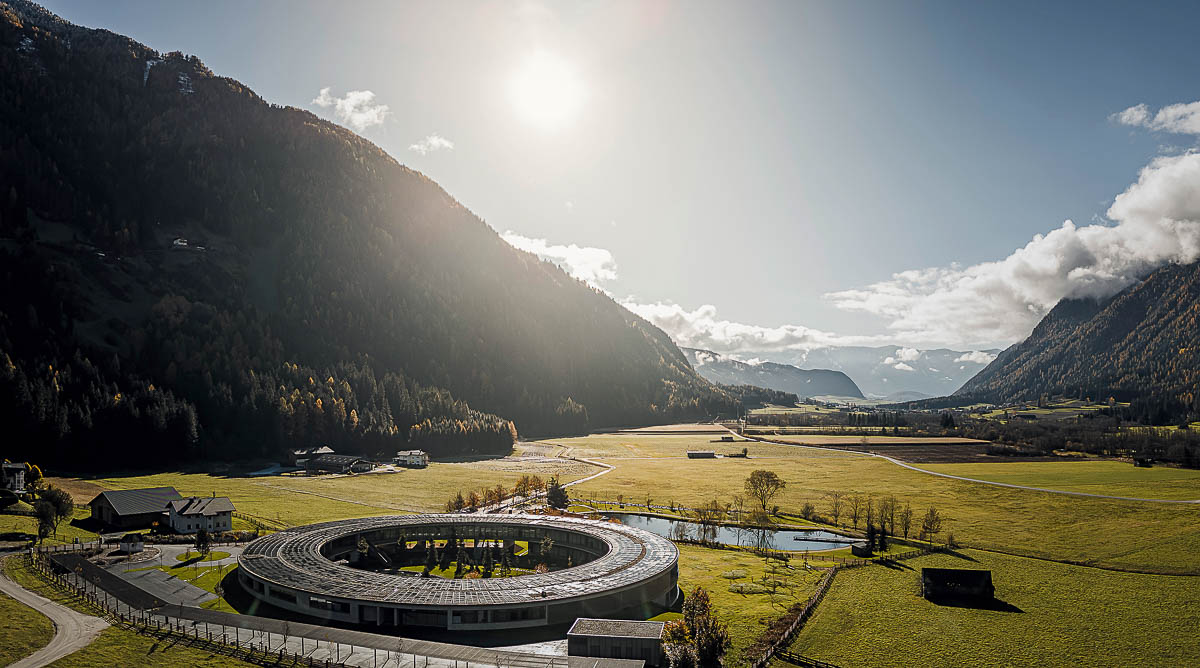 Edler Almcharakter für urbane Auszeiten Seit Dezember 2023 setzt das außergewöhnliche Eco Aparthotel OLM Nature Escape im Südtiroler Ahrntal, einem Seitental des Pustertals, gleich in dreifacher Weise innovative Akzente in der Südtiroler Ferienhotellerie: mit mutiger Architektur in Kreisform, einem zukunftsweisenden Kulinarikkonzept mit Spitzenkoch Berni Aichner und, erstmals im Alpenraum, als völlig energieautarkes Urlaubszuhause.
