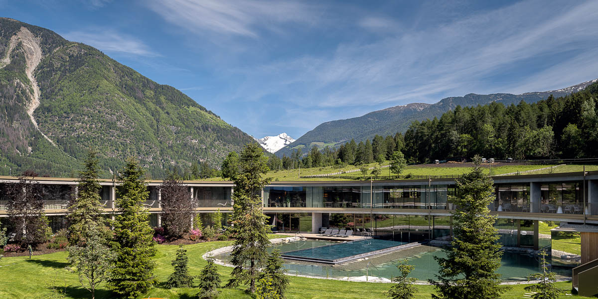 Das 4-Sterne-Superior-Eco-Aparthotel ist das erste vollständig energieautarke Urlaubsresort in Südtirol, wenn nicht im gesamten Alpenraum. Durch die Nutzung einer Kombination aus Wasserkraft, Fotovoltaik und Geothermie erzeugt das Hotel Energie für den gesamten Eigenbedarf. Der überschüssige Strom aus der Fotovoltaikanlage wird im Sommer ins örtliche Werk eingespeist und im Winter wieder hinzugekauft, um umweltschädliche Batterien zu vermeiden. Durch seine Energieautarkie leistet das Hotel einen wichtigen Beitrag zum Klimaschutz – und garantiert den Gästen auch beim Schwimmen im ganzjährig beheizten Pool oder Saunieren im Winter ein gutes ökologisches Gewissen.