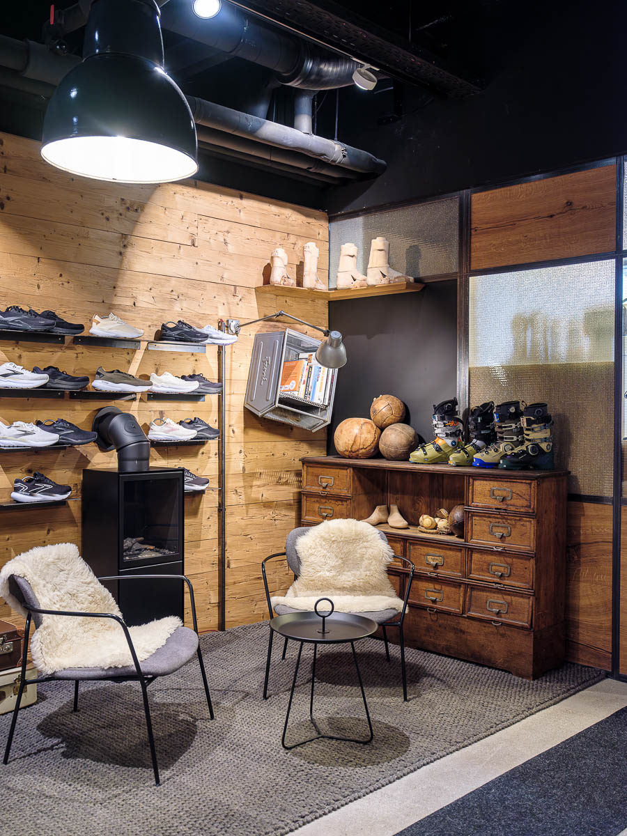 Diese Intuition hat sich der gebürtige Schwabe in der Praxis angeeignet. Vor 30 Jahren studierte er zunächst Innenarchitektur an der Kunstakademie in Stuttgart, die Liebe zum Interieur sieht man dem kleinen Verkaufsraum in der Neuturmstraße an. Schwarze Industrielampen hängen von der Decke, ein Boxsack und Böcke mit Kalbslederbezug schaffen Turnhallenflair, während mit Holz verkleidete Wände und historische Plakate für Skigebiete werben. Eine italienische Espressomaschine der Marke Faema, Baujahr 1965, verleiht dem Verkaufstresen die Atmosphäre einer Kult-Kaffeebar. Schon von klein auf spielt Sport für Sven Renz eine große Rolle, als Student tritt er als Triathlet bei der Bundesliga an und jobbt nebenbei in einem Laufsportgeschäft. Nach dem Diplom entscheidet er sich gegen eine Karriere an der Uni, zieht in seine Traumstadt München und eröffnet einen Laufsportladen, „das fand ich cooler“. Am Rande der Sportmesse Ispo lernt er seine langjährige Ehefrau kennen, die ehemalige Skirennläuferin Martina Ertl. Der erste Laden befand sich in der Ohlmüllerstraße im Stadtteil Au. „So viel Glück wie ich kann man gar nicht haben“, denkt Sven Renz damals. Der Umsatz steigt kontinuierlich, nach wenigen Jahren verkauft er bereits 1500 Schuhe im Jahr.